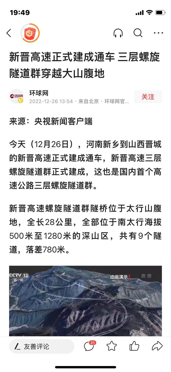 2022年12月26日河南新鄉(xiāng)到山西晉城的新晉高速正式建成通車,新晉高速公路三層螺旋隧道群正式建成,這也是國內首 個高速公路三層螺旋隧道群。其中韓口隧道、南湖隧道、轎頂山隧道、蒿坪隧道、白楝樹隧道二襯臺車均由本公司定設計制作。