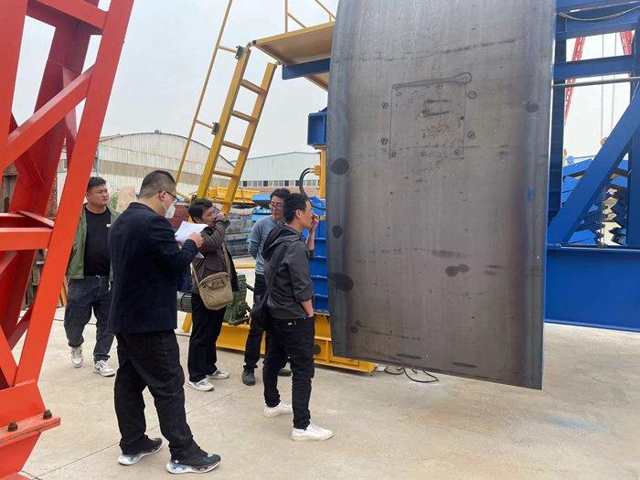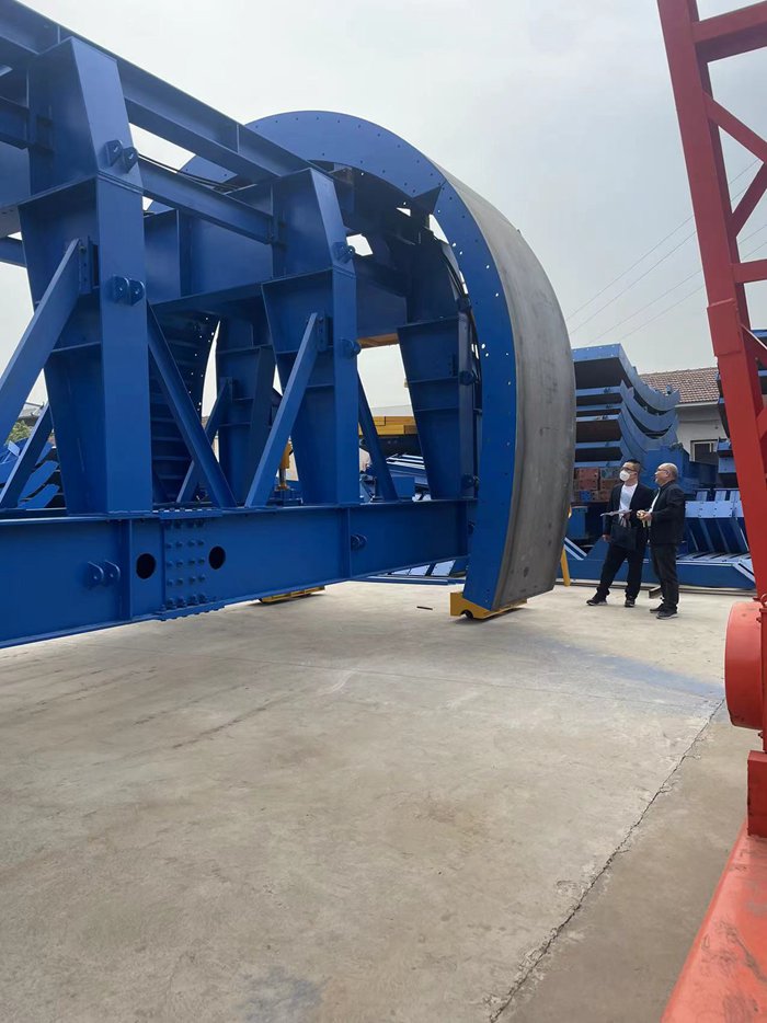 2023年4月13日,中鐵六局集團有限公司沈陽地鐵一號線1標項目經(jīng)理部檢查驗收專家組蒞臨我廠,對訂購我廠生產(chǎn)的二襯臺車進行檢查測量驗收。在為期一天的驗收工作中,通過聽取現(xiàn)場匯報,實地測量,調(diào)試、繪圖3D模擬,對我廠的二襯臺車進行了細致的檢查驗收。